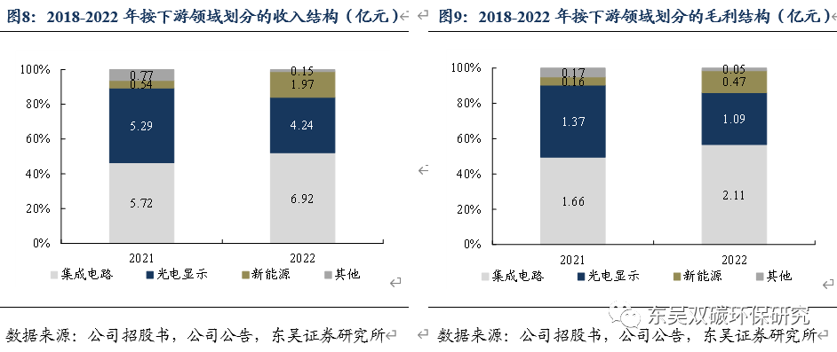 公司主营业务包括废气治理系统、废气治理设备、湿电子化学品供应与回收再生及其他,下游领域包括集成电路、面板、新能源等。我们根据公司各下游领域的发展情况,公司订单以及市占率情况,对公司各业务判断如下: