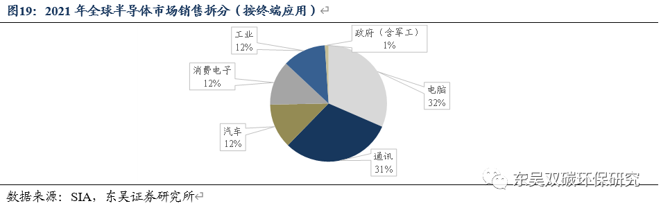 新周期驱动半导体需求向上,全球竞争焦点各国政策护航。半导体销售稳步提升,新周期引领新成长。2021年全球半导体销售终端应用中电脑、通讯、汽车、消费电子、工业、政府占比分别为32%、31%、12%、12%、12%、1%。2008年至2014年,智能手机来临,移动互联网高速发展带动行业重启成长。2015年以来,5G、LoT、汽车智能化电动化、人工智能,终端景气度接力,驱动半导体行业新成长。半导体作为工业皇冠、高端制造技术高地,行业发展被赋予国家安全、产业链安全等多重意义。半导体产业已成为全球发展竞争焦点,各地区持续出台相关政策护航。在此背景下,半导体产业景气度高企。