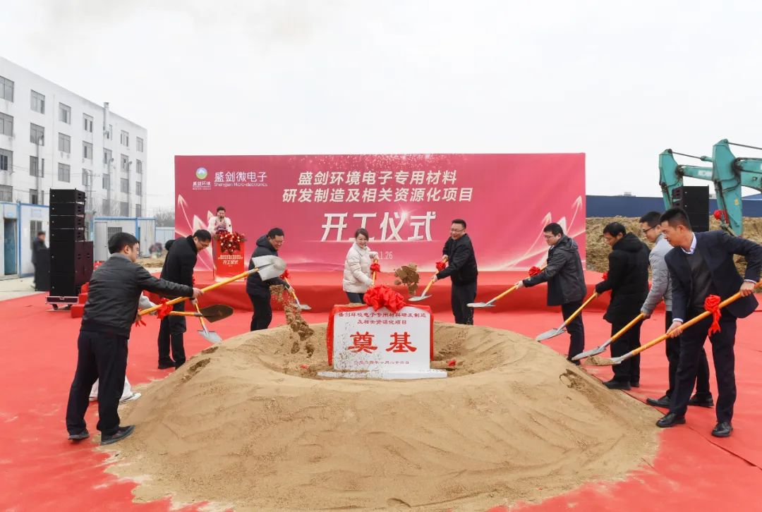 1月26日,上海盛剑环境系统科技股份有限公司(以下简称“盛剑环境”)在合肥市新站高新区举行电子专用材料研发制造及相关资源化项目(以下简称“项目”)开工仪式。新站高新区党工委委员、管委会副主任安志强,投资促进局局长杨涛,经济发展局、建设发展局,应急和城市管理局、生态环境分局及站北社区相关领导;盛剑环境董事长、总经理张伟明,董事汪哲,副总经理、董秘聂磊,装备事业部总经理张鹏;项目总包单位上海金山石油化工建筑有限公司总经理周公亮;建设银行合肥城东支行副行长胡传磊等领导嘉宾出席开工仪式。