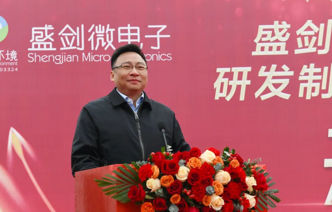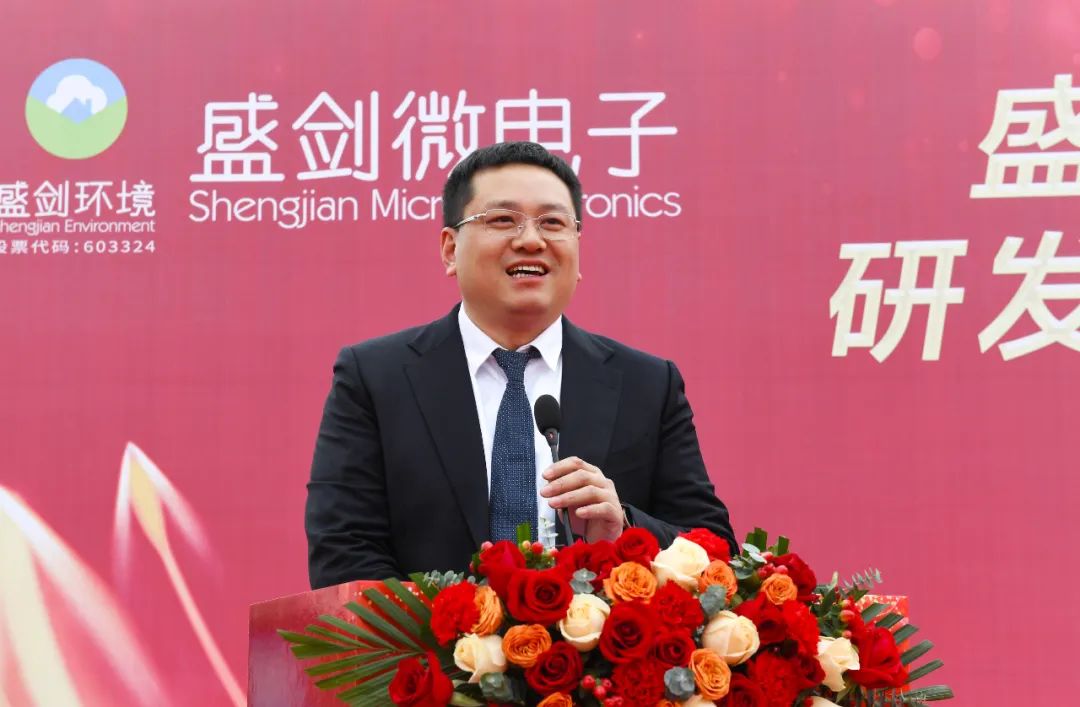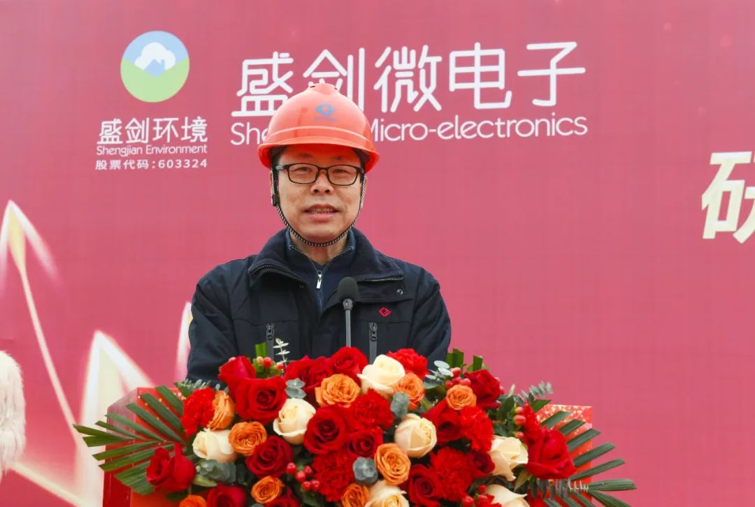 盛剑环境董事长、总经理张伟明致辞,对莅临仪式现场的领导及嘉宾表示热烈的欢迎和衷心的感谢;对项目的开工表示热烈祝贺。他表示“芯屏汽合”“集终生智”已成为合肥的现象级产业地标,新站高新区更是奋力打造新型显示、新能源及新材料两个千亿级产业集群,盛剑环境与新站高新区有着同样的发展梦想、产业缘分。盛剑环境投资设立全资公司合肥盛剑微电子有限公司,入驻合肥新站高新区。新站高新区高效行政服务水平和一流营商环境,为项目顺利开工提供了贴心服务、专业指导和大力支持,未来,合肥盛剑微将抓住长三角区域一体化和关键材料国产化的发展机遇,在新站高新区这块宝地做强做优做大。为合肥这块沃土注入新动能,为新站高新区发展成为全国领先的集成电路、新型显示领域科技创新和产业创新高地贡献一份盛剑力量。