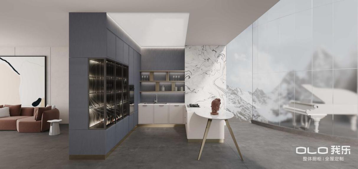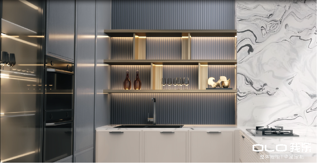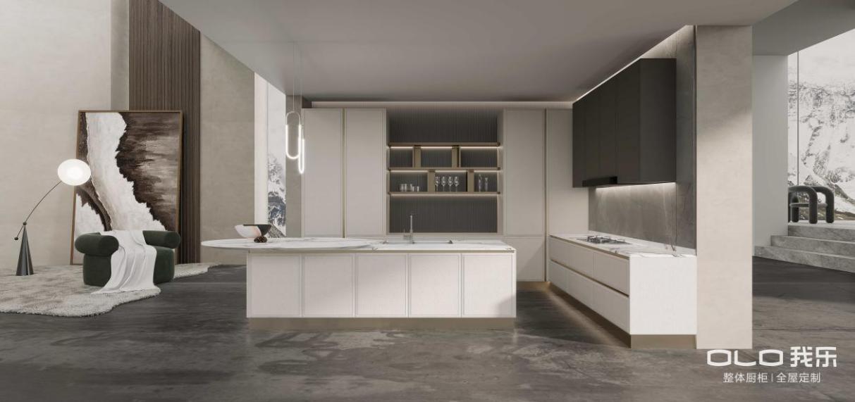 图:我乐家居橱柜新品洛亚系列——波浪板与灯光开架设计