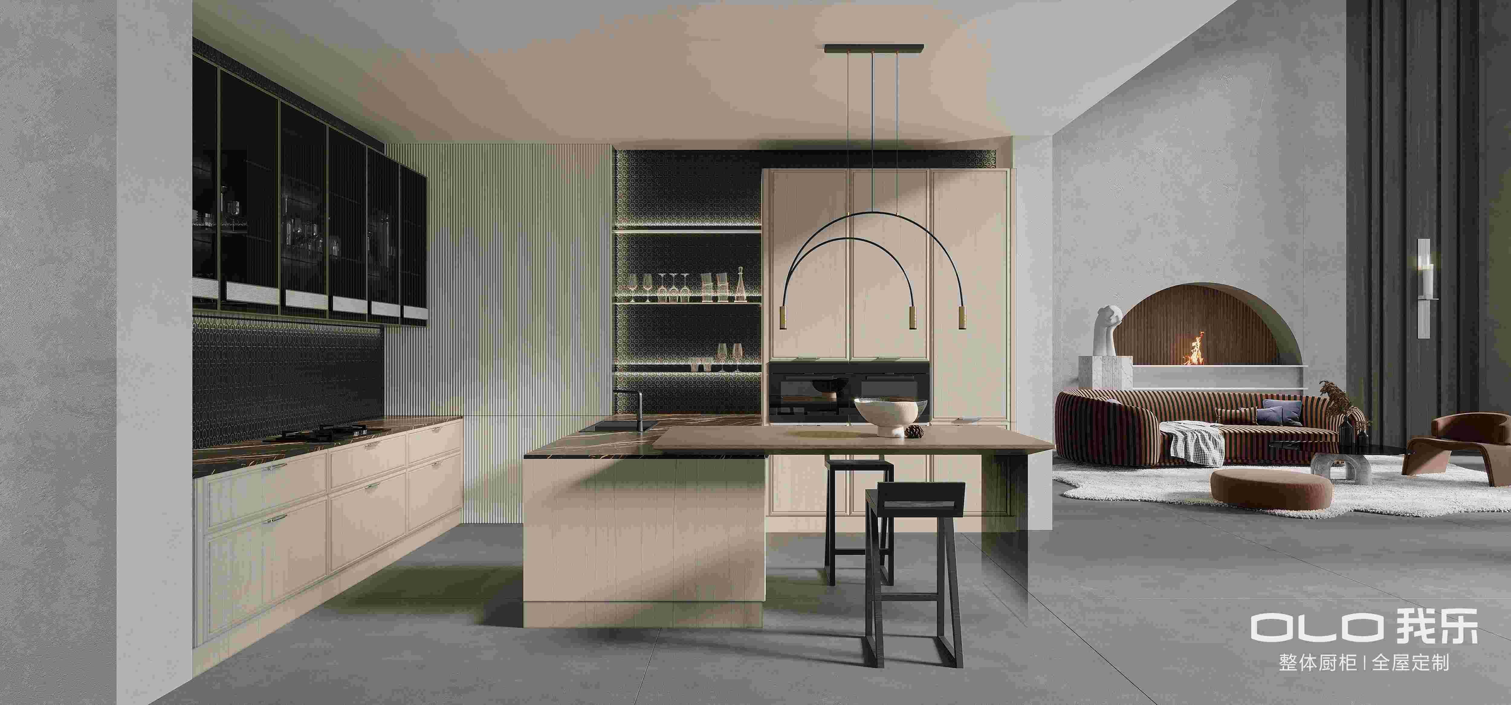 此次推出的洛亚系列,我乐设计师还创造性地在背景板、浮雕门板和金属拉手中融入创意字母OLO元素。