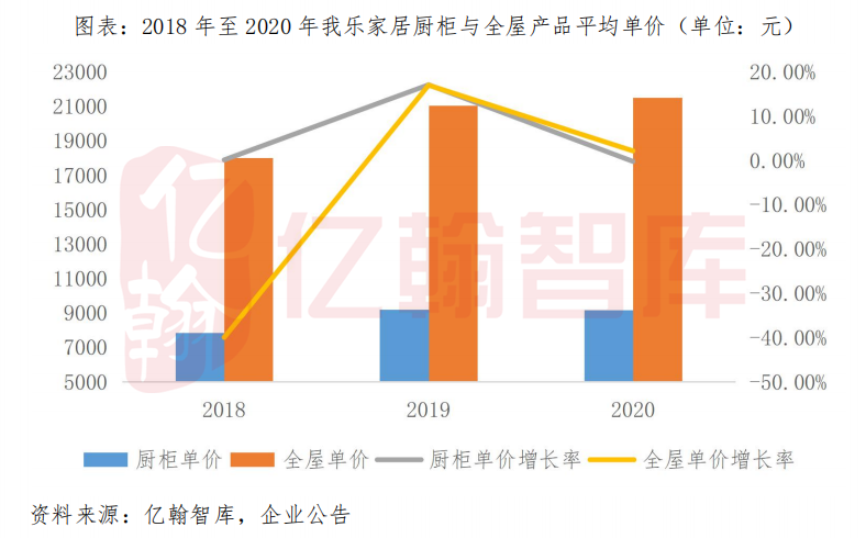 我乐家居在2019年毛利润率大幅提升的主要原因在于产品单价提升以及新产品线投入后的降本增效。2019年我乐家居平均产品单价大幅提升,厨柜与全屋产品分别达到9196元/套和21054.69元/套,同比增长17.06%以及16.97%。产品单价的提升并没有影响到公司产品的销售数量。2019年我乐家居厨柜产品销售79006套,全屋定制产品销售28757套,同比分别增长5.52%和4.81%。2020年产品销售数量延续了增长势头,厨柜与全屋产品销量同比增长16.32%与19.82%。2020年我乐家居厨柜产品均价在行业排行靠前,为9173.17元/套,价格符合公司中高端产品的定位,同期欧派家居橱柜产品均价为8497.68元/套,志邦家居厨柜产品均价为6729.81元/套。