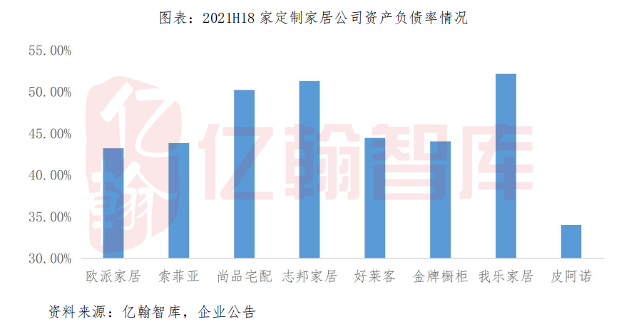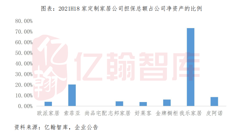 我乐家居还为子公司提供了较多的担保。2021H1公司为子公司担保1.66亿元,目前担保余额合计达到了7.96亿元,担保对象主要为子公司我乐制造、我乐销售、宁波我乐,相关资金主要用于满足子公司日常经营资金需求。2021H1公司净资产为10.88亿元,担保总额占公司净资产的比例达到73.17%。由于过高的担保金额,一旦相关子公司财务状况出现问题,对我乐家居当期经营与利润都将产生较大影响。同行业中,2021H1欧派家居担保总额占公司净资产的比例为4.02%,索菲亚为20.34%,志邦家居为4.52%,我乐家居的担保比例为8家定制家居公司中最高的公司。