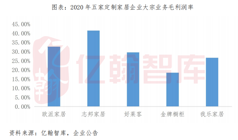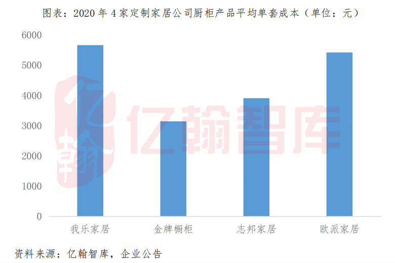 2018年我乐家居完成对溧水柔性工厂的建设,新生产线投入使用。2019年随着生产线产能释放,公司跟进了产品生产管理以及工艺技术改进等措施,达到了降本增效的成果。2019年公司在原材料价格上涨的情况下,稳定控制产品成本,厨柜产品每套成本同比增长11%,全屋定制产品每套同比下降2%。总营业成本增长10.45%,远小于营业收入23.1%的增速。2020年我乐家居整体厨柜平均成本为5669元/套,全屋定制产品平均成本为11339元/套。2020年欧派家居橱柜产品平均成本为5424元/套,金牌橱柜厨柜平均成本为3147元/套,志邦家居厨柜产品平均成本为3914元/套。公司厨柜产品成本较高,仍然有一定程度降低的空间。