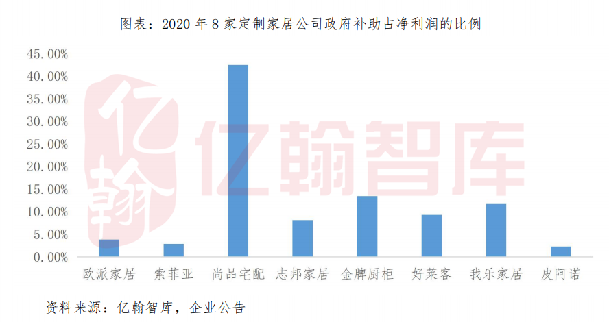 全行业中,我乐家居的政府补助占净利润的比重属于较高的水平。2020年欧派家居的占比为3.85%,索菲亚为2.89%,志邦家居为8.13%。行业中政府补助占净利润的比重超过我乐家居的公司仅有金牌厨柜和尚品宅配两家,金牌厨柜的比重为13.48%,尚品宅配为42.52%。2021H1欧派家居的比重为4.58%,索菲亚为3.86%,志邦家居为2.63%。行业中仅有尚品宅配的比重超过我乐家居,达到69.91%。