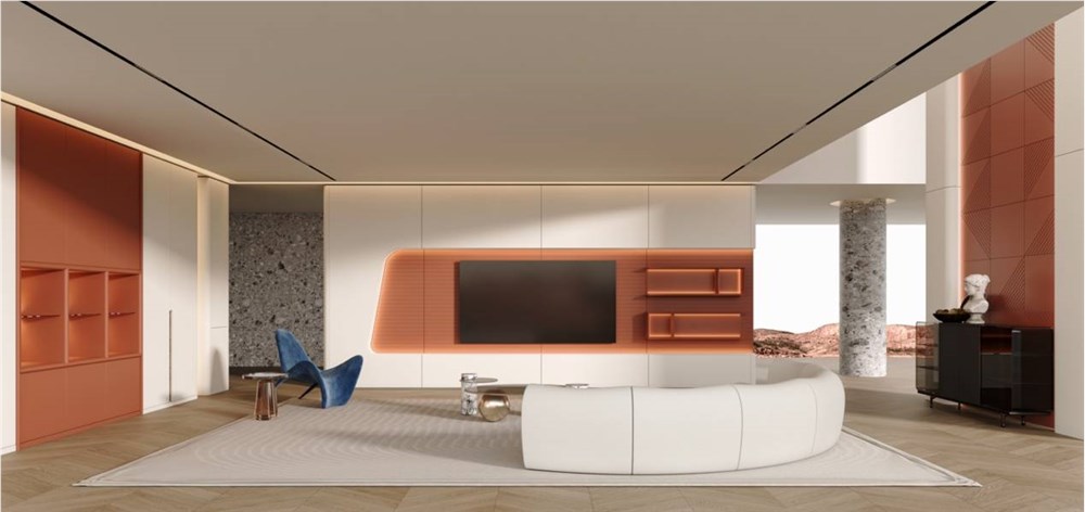 其中,不仅有新增的喷粉浆果橙花色,满满的多巴胺感,与水磨石在空间中交融,为现代气息增添一份活力,打造出了更高颜值的家居空间视觉效果;