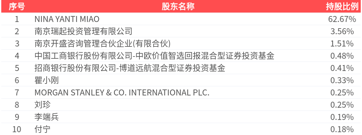 公司股东户数为1.65万户,前十大股东持股数量为2.25亿股,占总股本比例为69.82%,前十大股东持股情况如下: