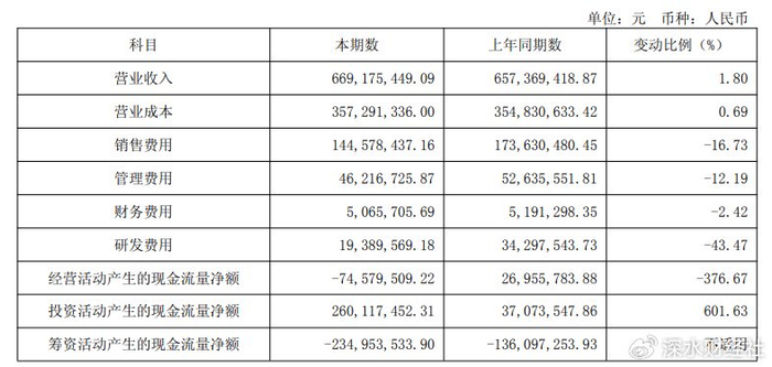 半年报数据显示,其研发费用从2024年上半年的3429.75万元骤降至2025年上半年的1938.96万元,降幅高达43.47%。同时销售费用与管理费用也分别大降16.73%和12.19%。