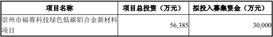 福蓉科技于2019年5月23日在上交所主板上市,公开发行股份5,100万股,均为新股,无老股转让,发行价格为8.45元/股,募集资金总额为43,095.00万元,募集资金净额为37,987.95万元,用于高精铝制通讯电子新材料及深加工生产建设项目、研发中心、补充流动资金。