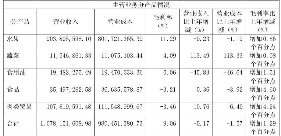 宏辉果蔬2024年主营业务分产品情况。截取自企业年报。