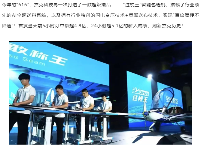 杰克股份目前的核心产品,主要就是在最高端的电脑式缝纫机上迭代技术,日系的优势是明显,中国在电机方面是占不到便宜,但是,日本制造也不是十全十美,他们错失了互联网产业,所以在产品软硬结合不行,尤其在软件端薄弱。其次,芯片设备制造还行,但芯片设计也不太行。所以基于自动化的方向,杰克股份的创新产品逐渐跑赢。