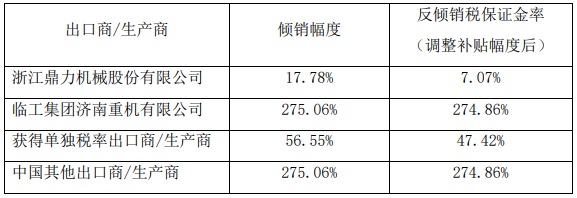 浙江鼎力(603338.SH)公布,公司获悉,美国商务部公布了对中国移动式升降作业平台反倾销调查初裁结果,具体情况如下: