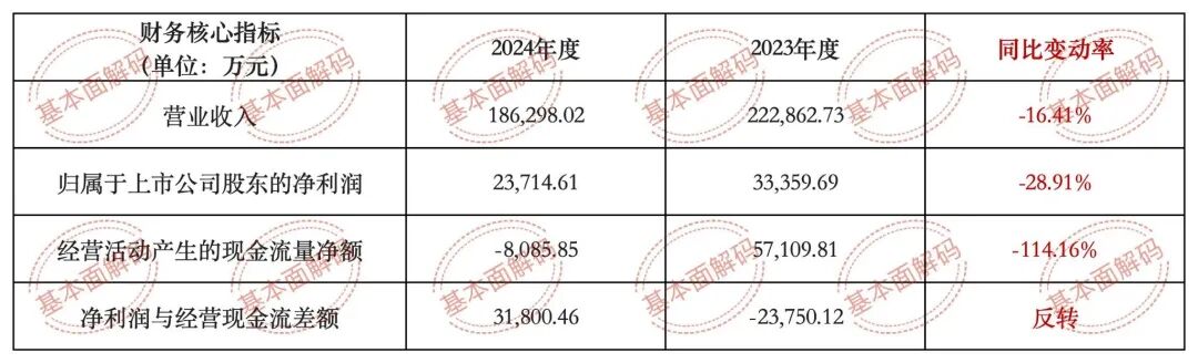 根据公开披露的财务决算数据,四方科技2024年度实现营业收入18.63亿元,较上年同期下降16.41%;实现归属于上市公司股东的净利润2.37亿元,同比下降28.91%;实现归属于上市公司股东的扣除非经常性损益的净利润2.19亿元,同比下降28.52%。在营业收入与净利润双双下滑的背景下,公司账面依然维持了超过2亿元的高额净利润。然而,与这一“账面富贵”形成灾难性对比的是,其2024年度经营活动产生的现金流量净额呈现断崖式下跌,录得-8,085.85万元,同比暴跌114.16%。