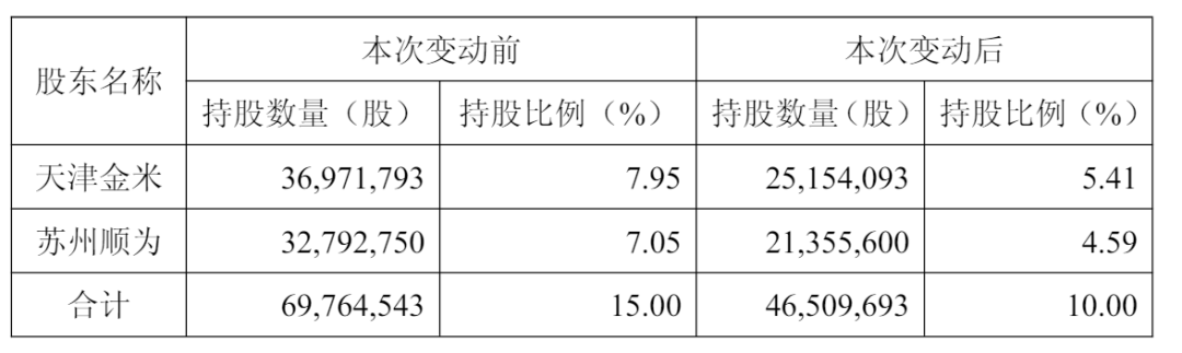 顺为于2025年4月21日至2025年6月17日,通过集中竞价交易和大宗交易方式,合计卖出公司无限售流通股11,437,150股,持有公司股份比例由7.05%变动至4.59%。