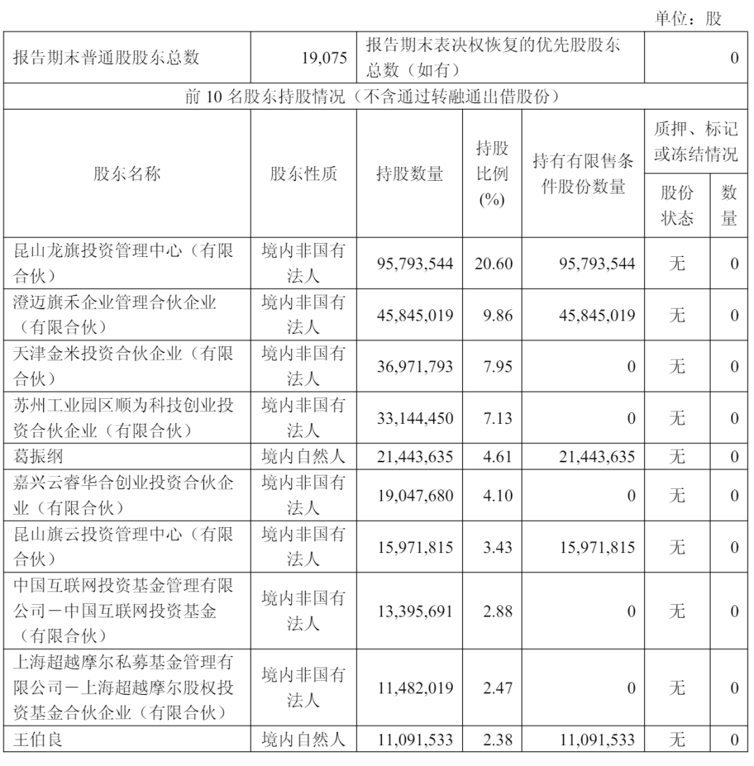 截至2025年3月31日,昆山龙旗持股为20.6%,昆山龙飞持股为9.86%,昆山云睿持股为3.43%,天津金米持股为7.95%,苏州顺为持股7.13%;