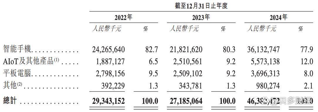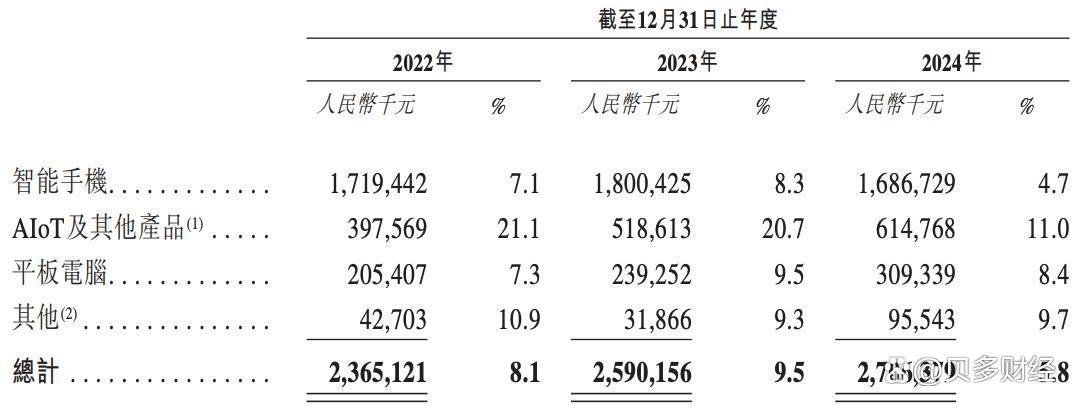 具体而言,龙旗科技2022年销售智能手机所得收入约为242.66亿元,2023年同比减少10.1%至218.22亿元。不过,该公司2023年销售AIoT及其他产品的收入则同比增长33.0%至约25.11亿元。