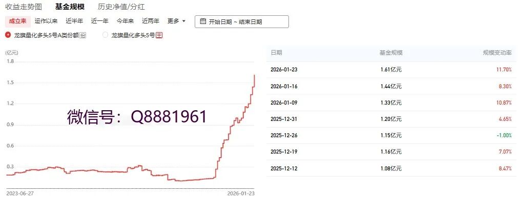 该只私募基金产品为R4中高风险,今年以来的收益为0.71%,成立1.1年以来的收益为13.87%,其中我们来看一下具体数据,成立以来的夏普比为1.38,成立以来的回撤为5.96%,单位净值为1.1387,通过图片,可以观察到这支基金产品的基金规模,截止到2026/1/23的累计净值为1.1387。想追踪最新的基金信息,微信扫描文章下方二维码了解更多信息,加我微信不迷路。