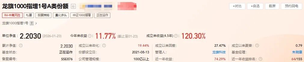 3.1.1产品①-------龙旗1000指增1号A类份额
