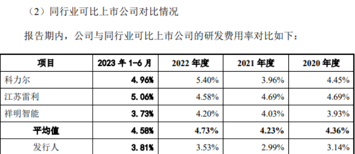 虽然总体上研发费用及费用率都在持续提升,不过,与同行业上市公司相比,星德胜期内都弱于行业平均值。