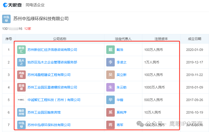 工商资料显示,上述三家公司的工商年报预留电话均为130****5616,而该电话同时也是苏州新创汇经济信息咨询有限公司、姑苏区泓木之企业管理咨询服务部、苏州鸿盈程建设工程有限公司、苏州工业园区肯萨尔信息咨询有限公司等多家公司工商电话。