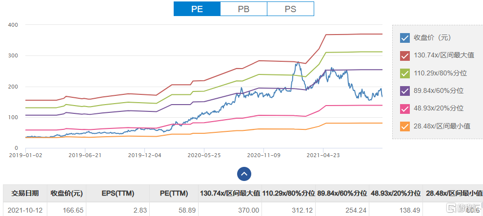 今年2月份,安井食品市盈率一度超过130倍。经过大半年的杀估值,截至目前仍有近60倍。从业绩来看,能否支撑得起如此高的估值确实是个问题。因此不出意外的话,安井食品未来仍然需要一段时间的回调。