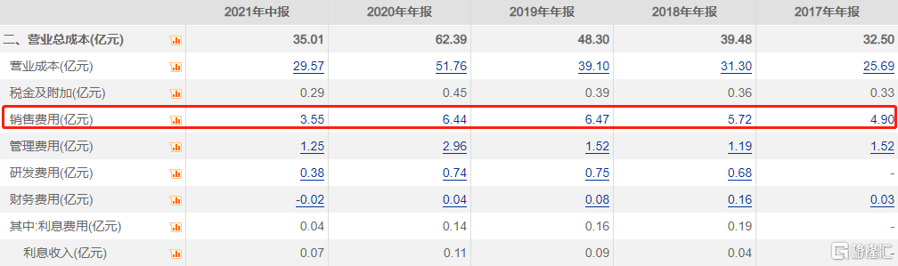 至于原因,则要归结到安井的经营策略上来。2019年到2021年上半年,安井食品的销售费用分别为6.5亿元、6.4亿元和3.6亿元,同比增长率分别为13%、-0.4%和10%。