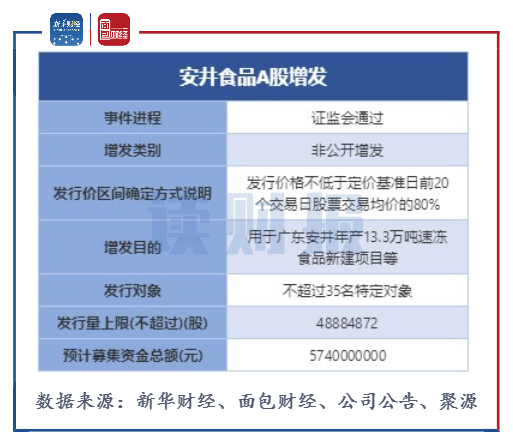 近日,安井食品披露公告称定增方案获得证监会批复。公司本次拟发行不超过 4888.49万股(含本数),预计募资不超过 57.4亿元(含本数),主要用于与公司主营业务相关的产能新建和扩建、技术改造、信息化建设、营销网络建设、补充流动资金等。