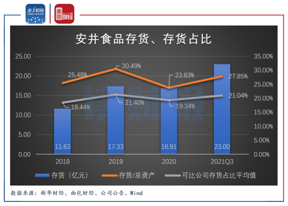 图3:2018年至2021年前三季度安井食品存货、存货占比