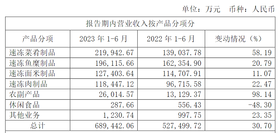 8月1日,安井食品2023年半年度报告出炉。2023年上半年,安井食品实现营业收入约68.94亿元,同比增长30.7%;归属于上市公司股东的净利润约7.35亿元,同比增长62.14%;归属于上市公司股东的扣除非经常性损益的净利润约6.95亿元,同比增长82.65%。