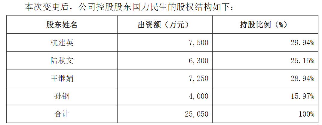 值得一提的是,在章高路、王苏出让股份前,国力民生的股权已发生变动。其中,杭华已将其持有的国力民生5.99%股权以1500万元转让给其母亲杭建英。杭建英是国力民生股东行列中的新面孔,根据安井食品所披露,截至5月9日,国力民生股东中还没有杭建英之名,而戴玉寒仍位居股东名列。