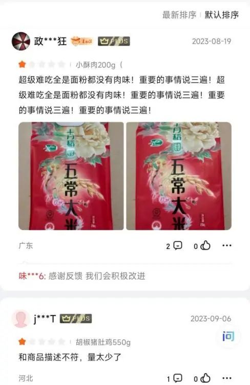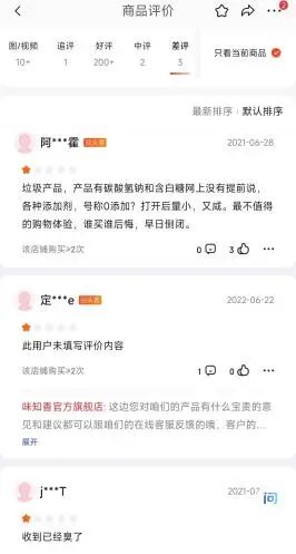 浏览味知香京东官方旗舰店,一些C端消费者的差评需企业警惕。