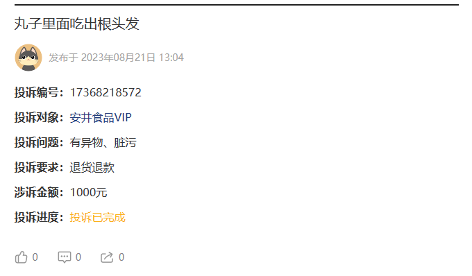 不算苛问,浏览黑猫投诉,截至2023年9月26日,安井食品相关投诉累计94条。数量真心不算多,可反映的产品质量质疑需引起企业反省。