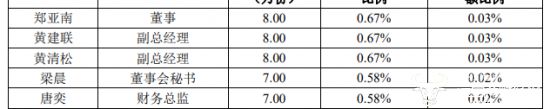 而据公司11月14日所发布的2023年股票期权激励计划显示,公司将授予黄建联8万份股票期权,占此次激励计划拟授出权益数量的0.67%。