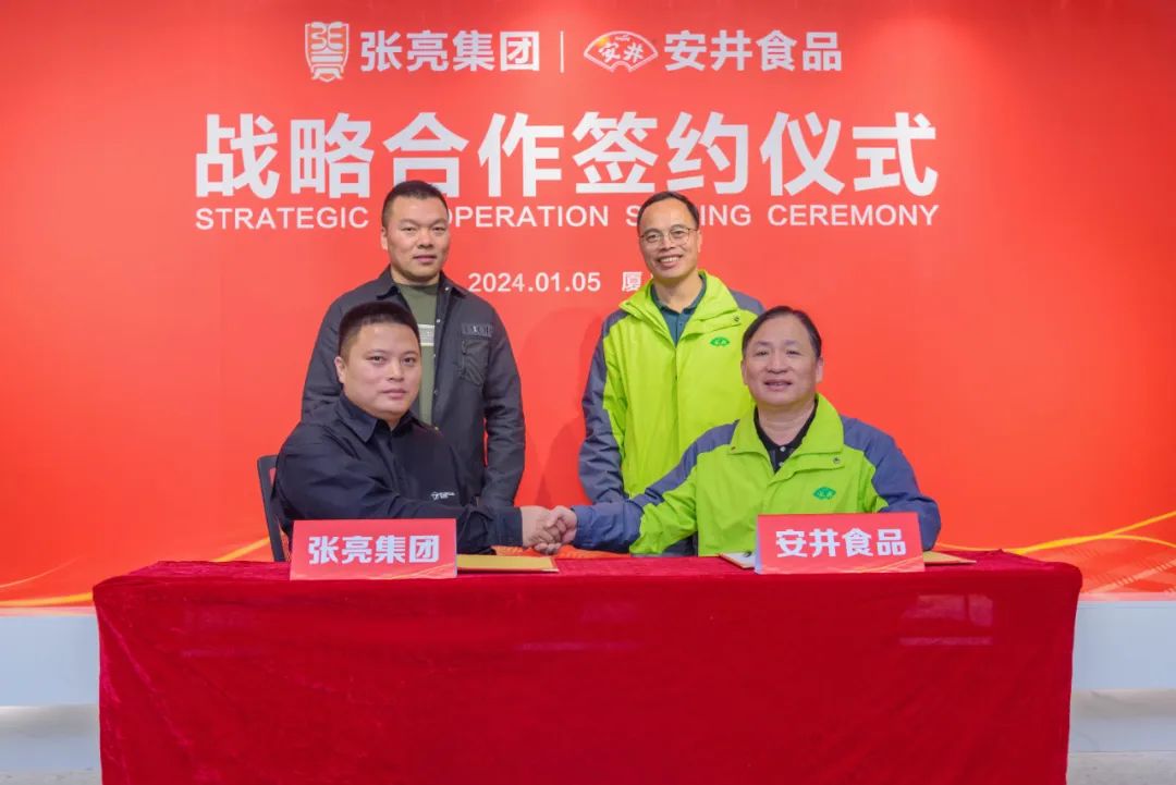 1月5日,安井食品与张亮集团战略合作签约仪式在安井食品集团总部厦门隆重举行!张亮集团董事长张亮、副总裁兼供应链版块总经理张宇,安井食品集团总裁张清苗、集团副总裁黄清松等领导嘉宾参加会议,共同见证签约仪式。