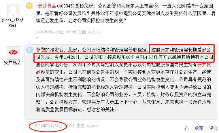 但是!你要知道,5月31日,在投资者互动平台,公司还在回复投资者,信誓旦旦的说“控股股东和管理层长期看好公司发展”!公司还说了:今年1月26日,公司发布了控股股东60个月内不以任何方式减持其所持有本公司股份的承诺公告!