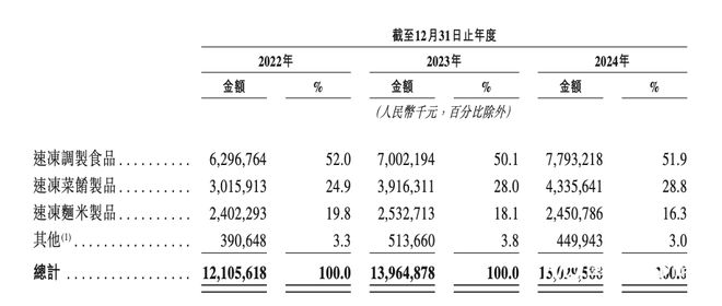 2024年,安井食品的速冻调制品收入为77.93亿元,同比增长11.30%,占整体收入的比例为51.9%;速冻菜肴制品收入为43.36亿元,同比增长了10.73%,占收入的比例为28.8%。速冻面米制品收入为24.51亿元,同比下滑了3.24%,占总收入的比例为16.3%。