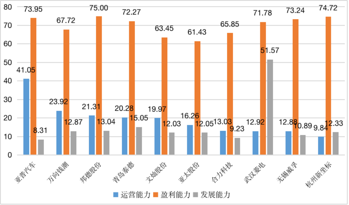 图4 “汽车零部件”赛道企业营运盈利及发展能力(节选)(100分制)