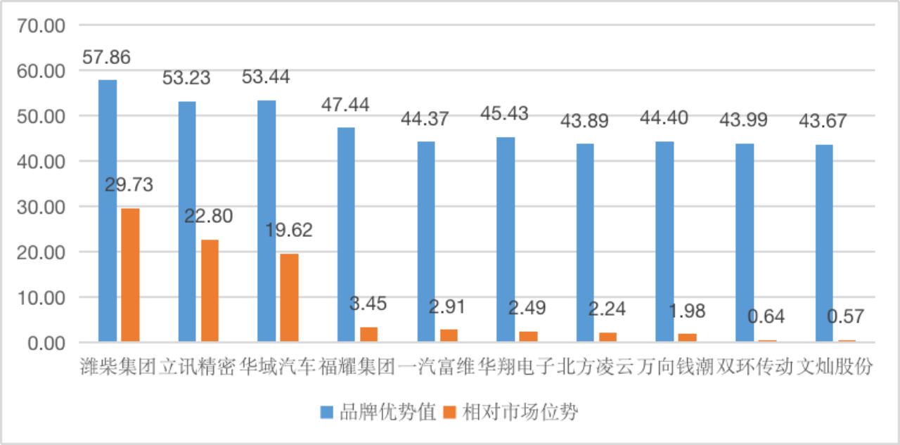 图2 “汽车零部件”赛道企业品牌优势值与相对市场位势(节选)