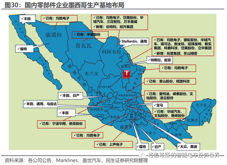 ?收购百炼,拓展工艺,开启全球化进程。2020年末,公司收购全球领先的铝合金压铸件生产企业法国百炼集团,进一步扩充产品品类。百炼集团具备低压和重力铸造的技术优势,同文灿的铸造工艺实现优势互补,有利于优化生产流程,从而降低生产成本、提升产品毛利率。公司客户资源丰富,涵盖国内外知名整车厂和Tier1厂商,在收购法国百炼集团后,公司进一步进行海外客户拓展,提升公司在汽车供应链中的竞争地位。此外,百炼在全球拥有12个生产基地,分布在墨西哥、中国(武汉、大连、无锡)、法国、匈牙利、塞尔维亚等国家,公司通过收购百炼完成了全球生产基地的布局,有望根据各个汽车厂商的制造需求在各个生产基地投资建设不同工艺的铸造生产线,进而推动公司商业全球化进程的发展。公司有望充分受益于墨西哥汽车产业的高速发展,实现市占率的提升。