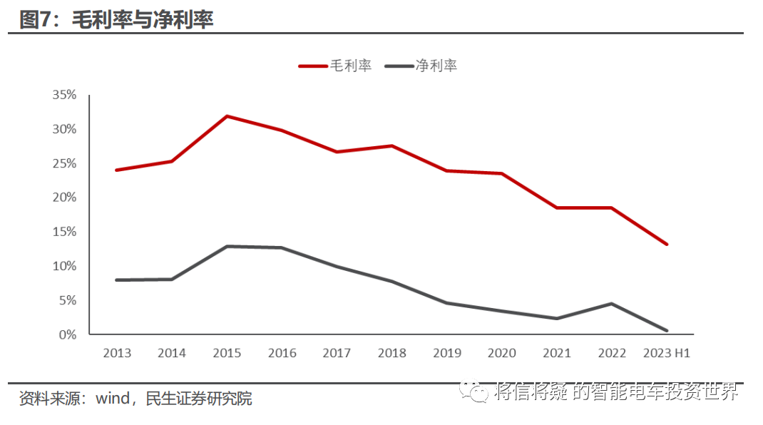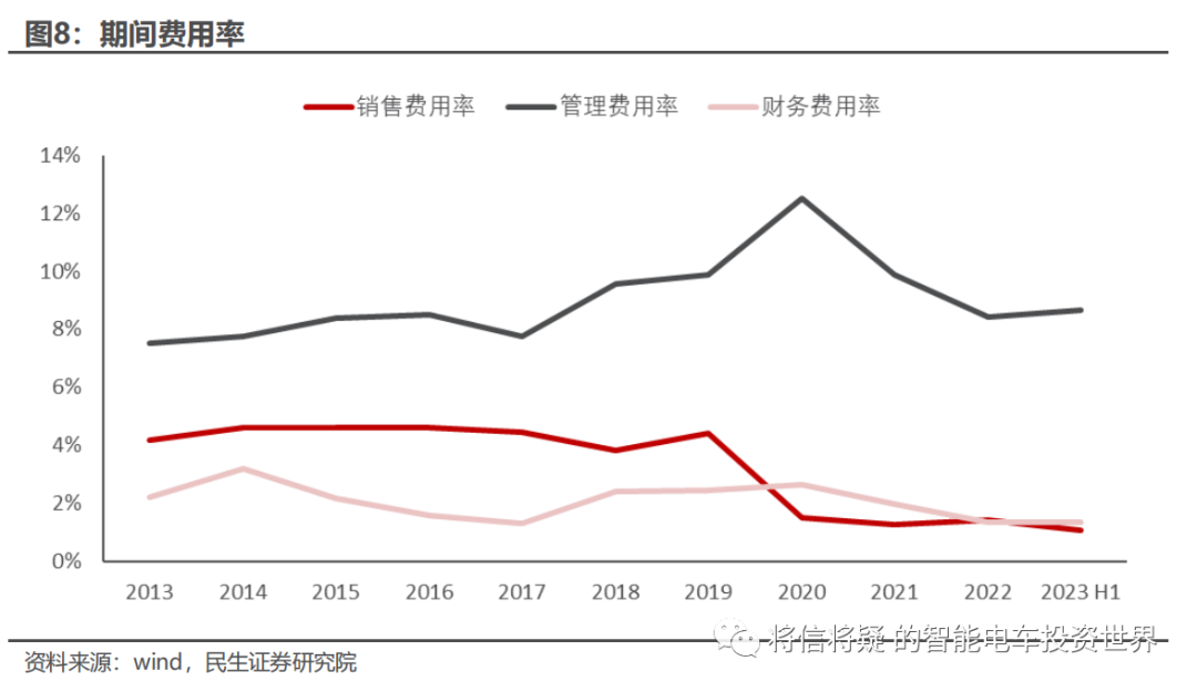 净利率触底,中长期将逐渐恢复。从盈利能力来看,公司2022年全年毛利率为18.5%,同比-0.03pct, 23Q2公司毛利率达12.1%、同比-5.1pct/环比-2.2pct,同环比下滑,主要系因产能利用率较低、海外短期因素扰动等,23Q2净利率达0.88%,同比-3.86pct/环比+0.68pct,盈利能力边际改善,中长期将逐渐恢复。