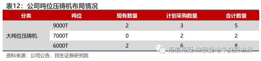 3)一体化压铸壁垒较高,公司具备大型压铸模具自制能力,高良率在行业具备一定稀缺性,利于公司获取更多优质订单;