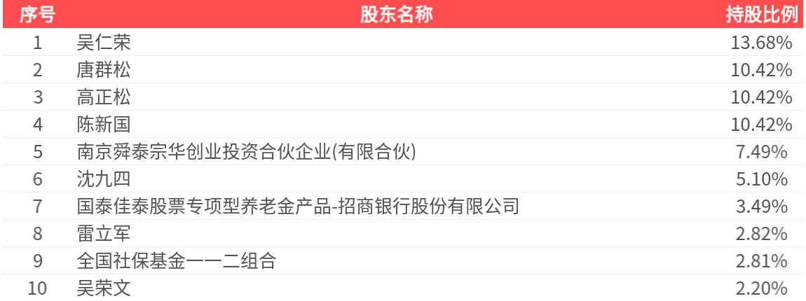 公司股东户数为5012户,前十大股东持股数量为9322.89万股,占总股本比例为68.83%,前十大股东持股情况如下: