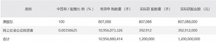 莱克电气10月16日公告,本次发行最终确定的网上向一般社会公众投资者发行的莱克转债为392,912,000 元(392,912 手),占本次发行总量的 32.74%,网上中签率为0.00358625%。根据上交所提供的网上申购信息,本次网上申购有效申购户数为11,009,285户,有效申购数量为10,956,073,326手,即10,956,073,326,000元,配号总数为10,956,073,326个,起讫号码为100,000,000,000-110,956,073,325。