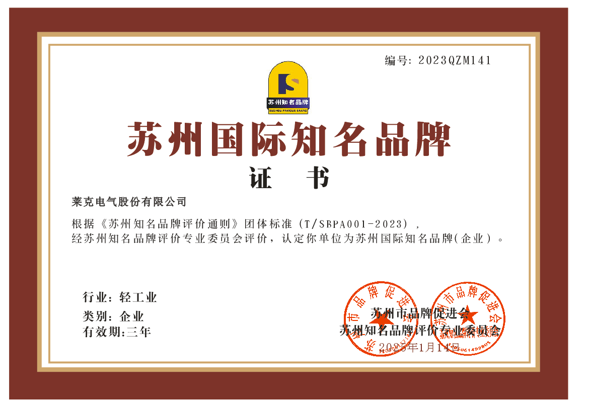 莱克电气股份有限公司凭借其品牌实力和国际影响力,经过苏州知名品牌评价专业委员会的严格评价,从众多候选企业中脱颖而出,荣获“苏州国际知名品牌(企业)”奖项。