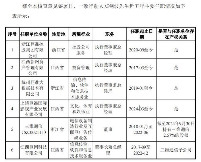 郑剑波出生于1981年8月,上饶师范学院美术系专科学历。其职业经历丰富,2005年3月起先后在华为担任美术研发工程师,在天人网络电视工作室任负责人,在江西巨网科技任监事、副经理、执行董事、经理,后担任江西巨网科技董事长兼总经理等职务,还曾任三维通信(002115)非独立董事,且在多家涉及控股、投资管理、信息技术等行业的企业任职,目前持有三维通信2.57%股权。