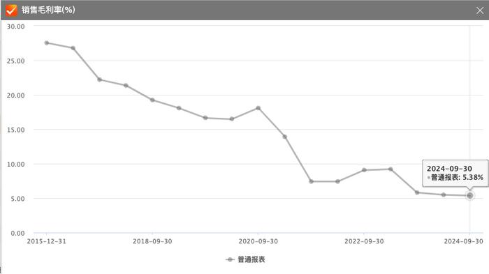 华菱精工销售毛利率一路下滑,从早期将近30%降至2024年前三季度的5.38%,销售净利率近两年也均处于负值状态。