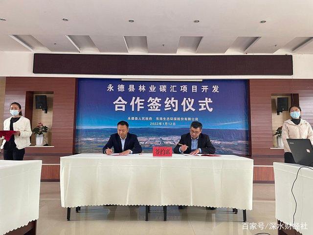 1月12日,东珠生态与永德县人民政府签定了战略合作协议。双方计划将共同开发林业碳汇项目,助力永德县加快达成碳达峰碳中和目标,同时转化林业资源为经济效益,实现碳汇指标CCER(国家核证自愿减排量)交易,并以此项目作为样板,向全省市推广。