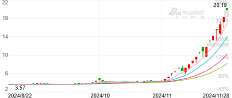 截至11月28日收盘,日出东方股票报19.80元/股,而本月初股价还未突破5元/股。自11月4日至28日,日出东方累计涨幅接近350%,19个交易日中14天实现了涨停,仅有1天股价下跌。
