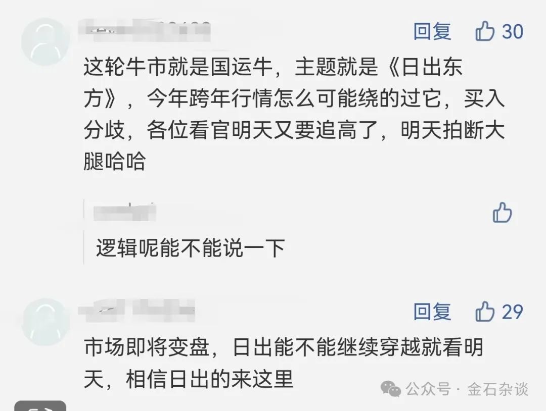 28日便有网友慷慨激昂的表示,这轮牛市就是国运牛,主题就是《日出东方》,今年跨年行情怎么能够绕过他,买入分歧,各位看官又要追高了,明天(29日)拍断大腿哈。